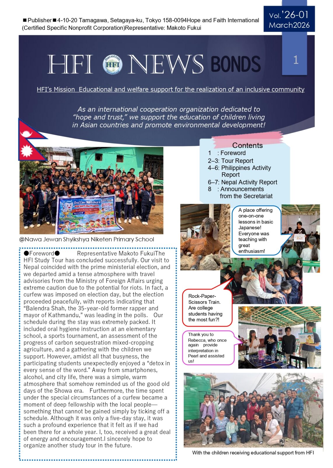 We have published our newsletter in English. We have supporters of HFI overseas as well.If you would like a copy, please contact us and we will send it to you.We only ship within Japan. For those overseas, we will send a PDF attachment.