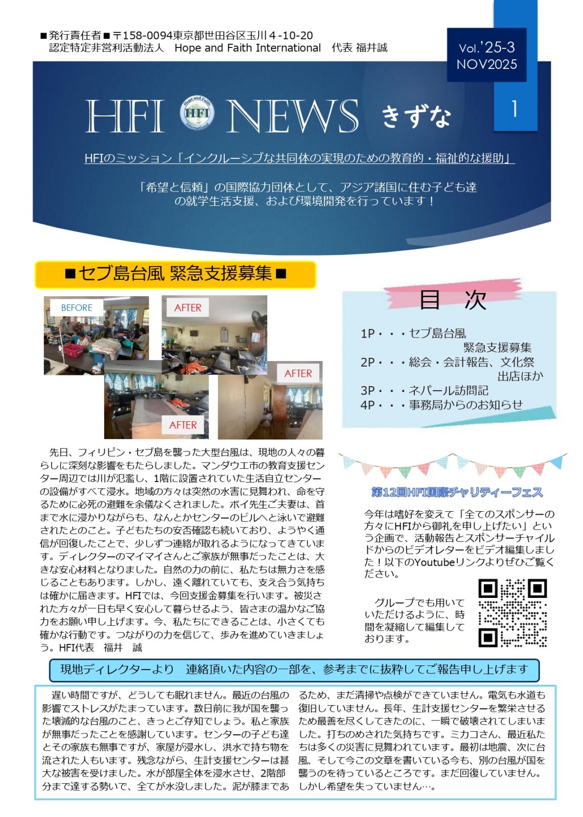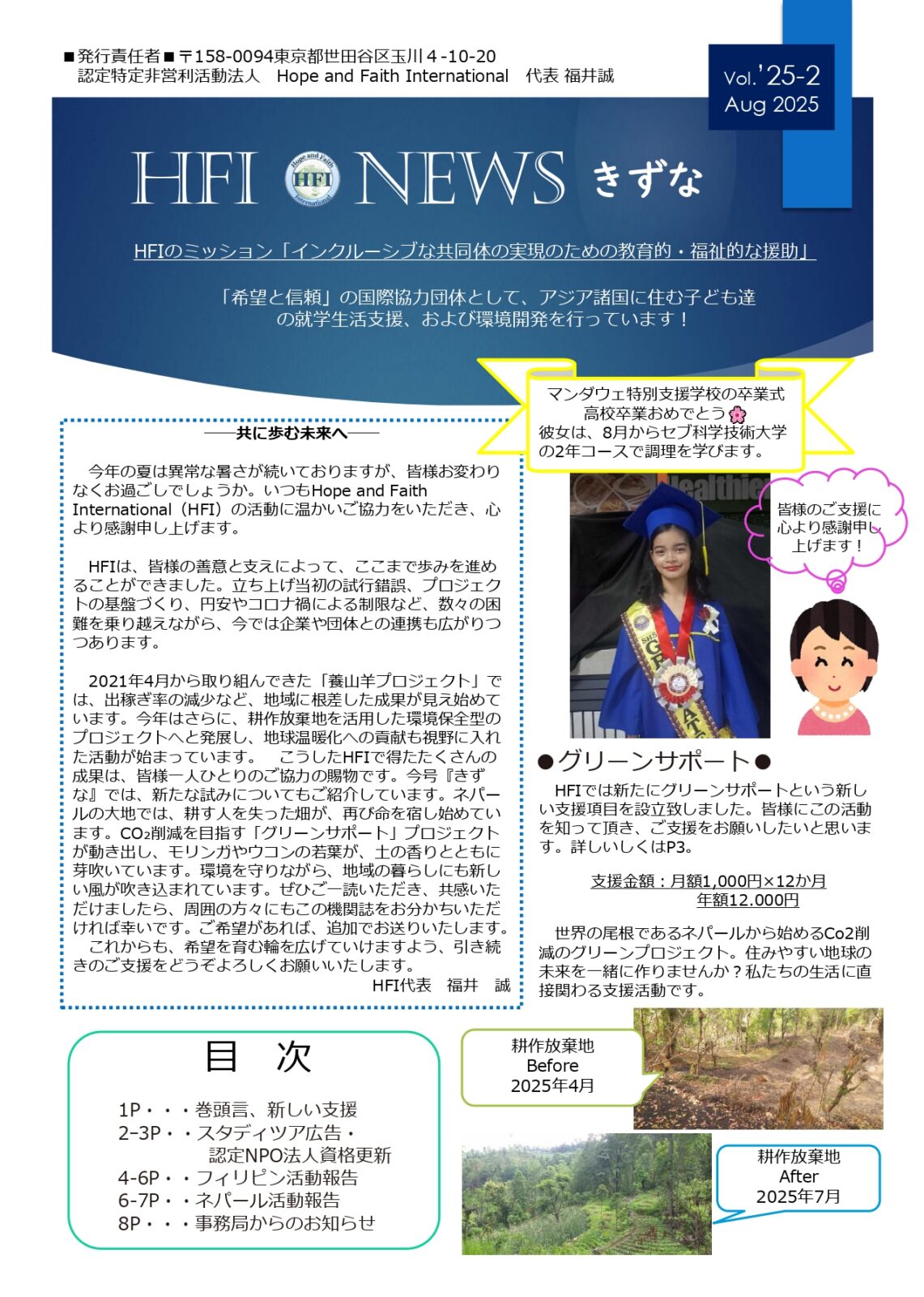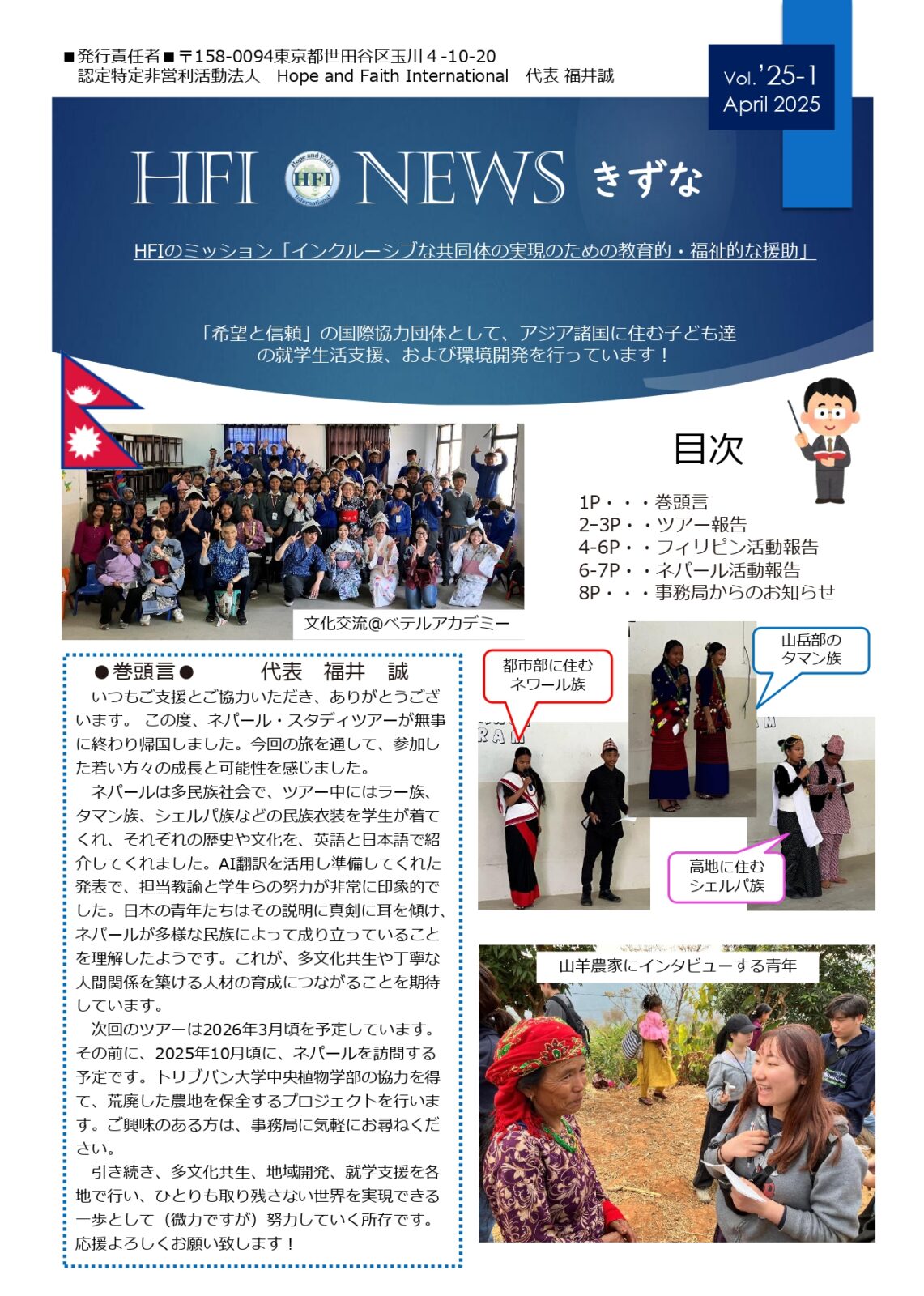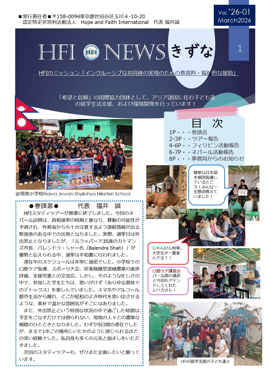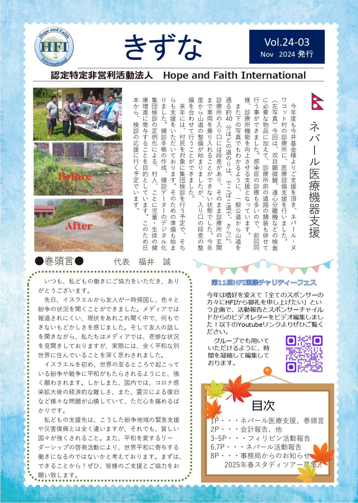 ご支援いただいている方または、頂いたことのある方には、活動報告・情報提供のためニュースレター「きずな」をお送りしています。ご必要な方はお気軽にお問合せください。お送りさせて頂きます。